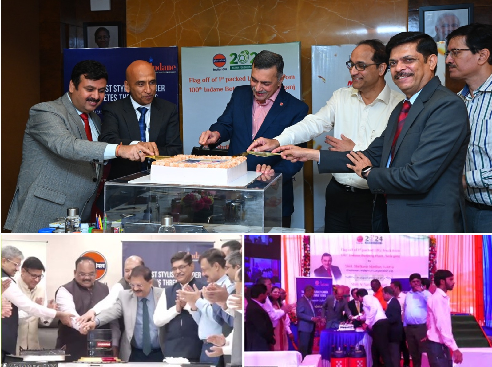 IndianOil proudly announced the release of the first truckload of packed LPG from its 100th Indane Bottling Plant, Sitarganj in Uttrakhand today. Mr S M Vaidya, Chairman, virtually flagged off the first packed LPG truck load bottled at the newly built state-ofthe-art facility at Sitarganj, in the presence of Mr V Satish Kumar, Director (Marketing). Mr K Shailendra, ED (LPG), Marketing Head Office (MKHO), Mr Hemant Rathore, ED & SH, Uttar Pradesh State Office-2 (UPSO-2) and other senior officials also joined the remarkable occasion. Chairman shared his enthusiasm for the milestone achievement of dispatching the first packed LPG truckload from Sitarganj Bottling Plant. He emphasised the paramount importance of safety and quality in the LPG cylinders to be supplied from the plant. Urging the team to strive for excellence, Mr Vaidya stated, “Let Sitarganj be a model plant by setting up a positive legacy complying with all safety norms in operations and deliver all cylinders fit & fine, securing a top-notch reputation in the market.” During this significant event, Chairman also took the opportunity to engage with team members at the Sitarganj Bottling Plant, fostering a sense of unity and commitment to excellence. Congratulating on marking the century figure of LPG Bottling Plants, Director (Marketing) said that this is momentous occasion, which will keep LPG flag flying high. He shared that this is an ultra-modern facility equipped with bottling of entire range of LPG cylinders with automation. He further complimented the team for setting up the plant at the picturesque location in Uttarakhand. On this occasion, the 7th anniversary of Durapave and the 3rd anniversary of Composite Cylinder were also celebrated. Highlighting the significance of Durapave, Mr Vaidya said, “It is one product which is helping in building the national highways. The whole country is on the move, and we are contributing immensely to nation-building.” He further added, “I think Durapave has huge potential. The Refineries Division is also enhancing the capacity of bitumen production since we firmly believe that bitumen will grow by leaps and bounds. The Refineries Division is getting ready, and so is the Marketing Division by virtue of having new storages for bitumen and new ways of marketing bitumen.” In this connection, Mr V Satish Kumar shared, “Launched on March 27, 2017, Durapave stands for Durable Pavement - a testament to the high-performance nature of our bituminous products. As the market leader in Bitumen, with a commanding market share of approximately 54%, IndianOil has played an integral role in paving the way for progress across the nation.” Speaking of composite cylinder, Mr Vaidya said this is one product which has got a huge potential, and we can do wonders with that. “We have around 7.3 lakh composite cylinders across the nation, accompanied by 15.3 lakh refills since its launch in March 2021. Composite cylinder is also garnering more customers because of the reduced deposit amount and other features”, said Chairman. He emphasised on pushing this product forward because of its safety aspects and convenience.